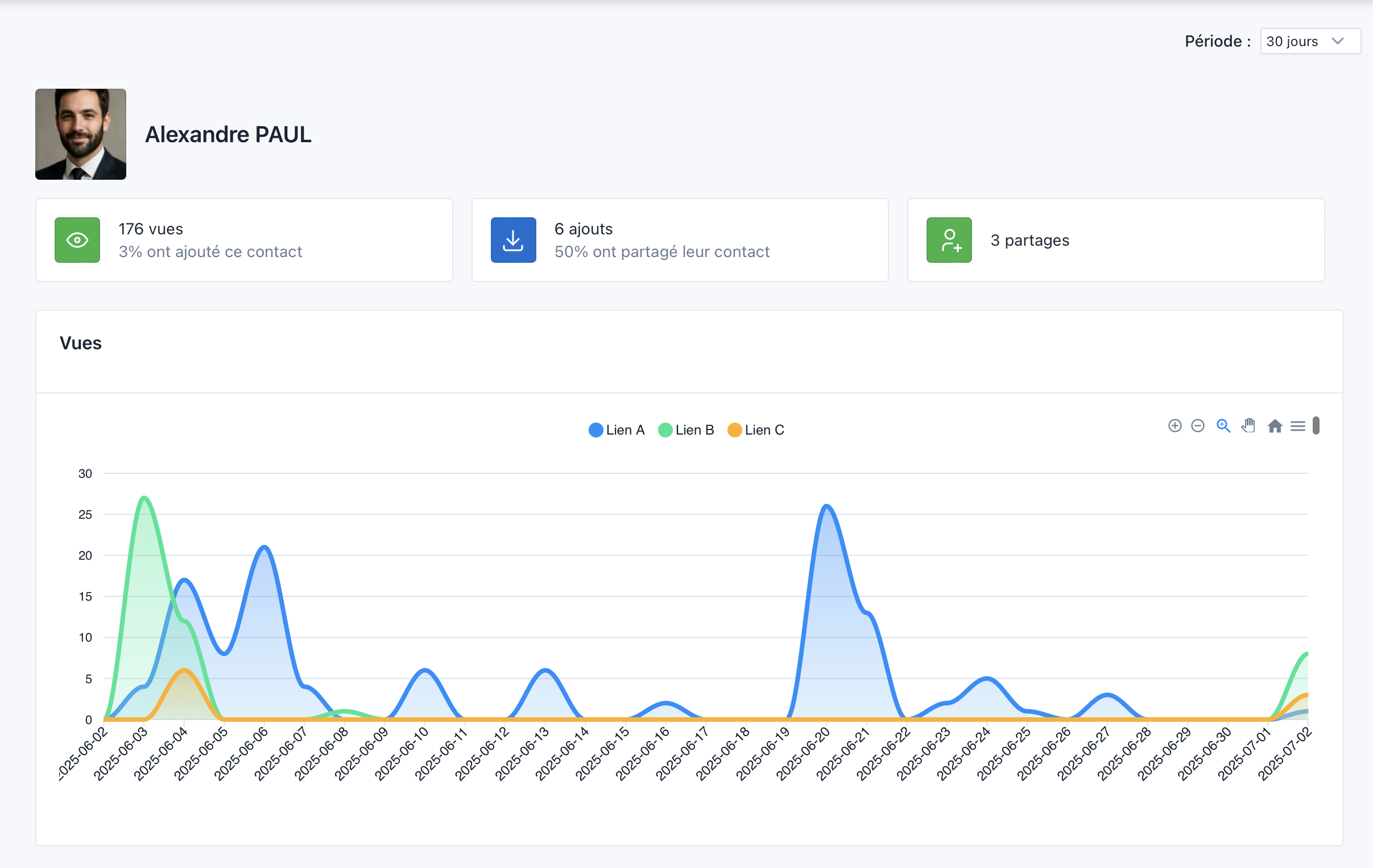 Chaque scan de votre carte permet à votre contact de vous laisser ses infos directement.