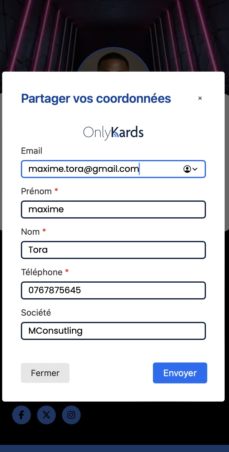 Envoyez votre vCard par QR code, lien ou carte NFC.